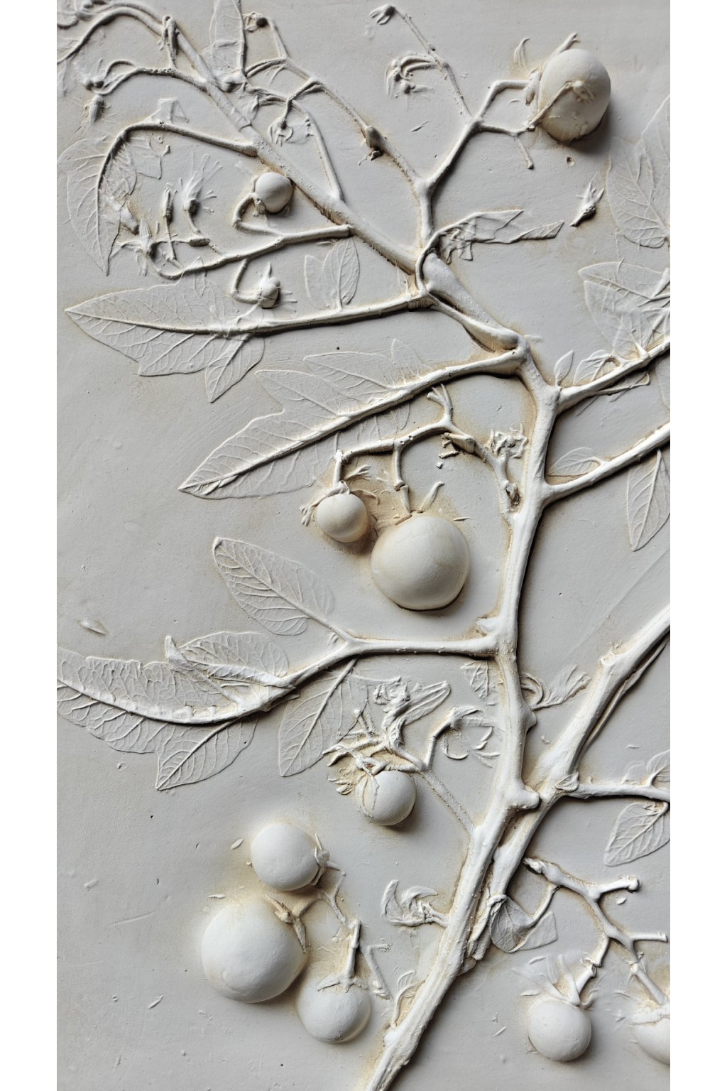 V kachli se mohou vyskytovat zbytky rostlin po otisku do hlíny, odstín je dán stupněm vymytí hlíny ze sádry.